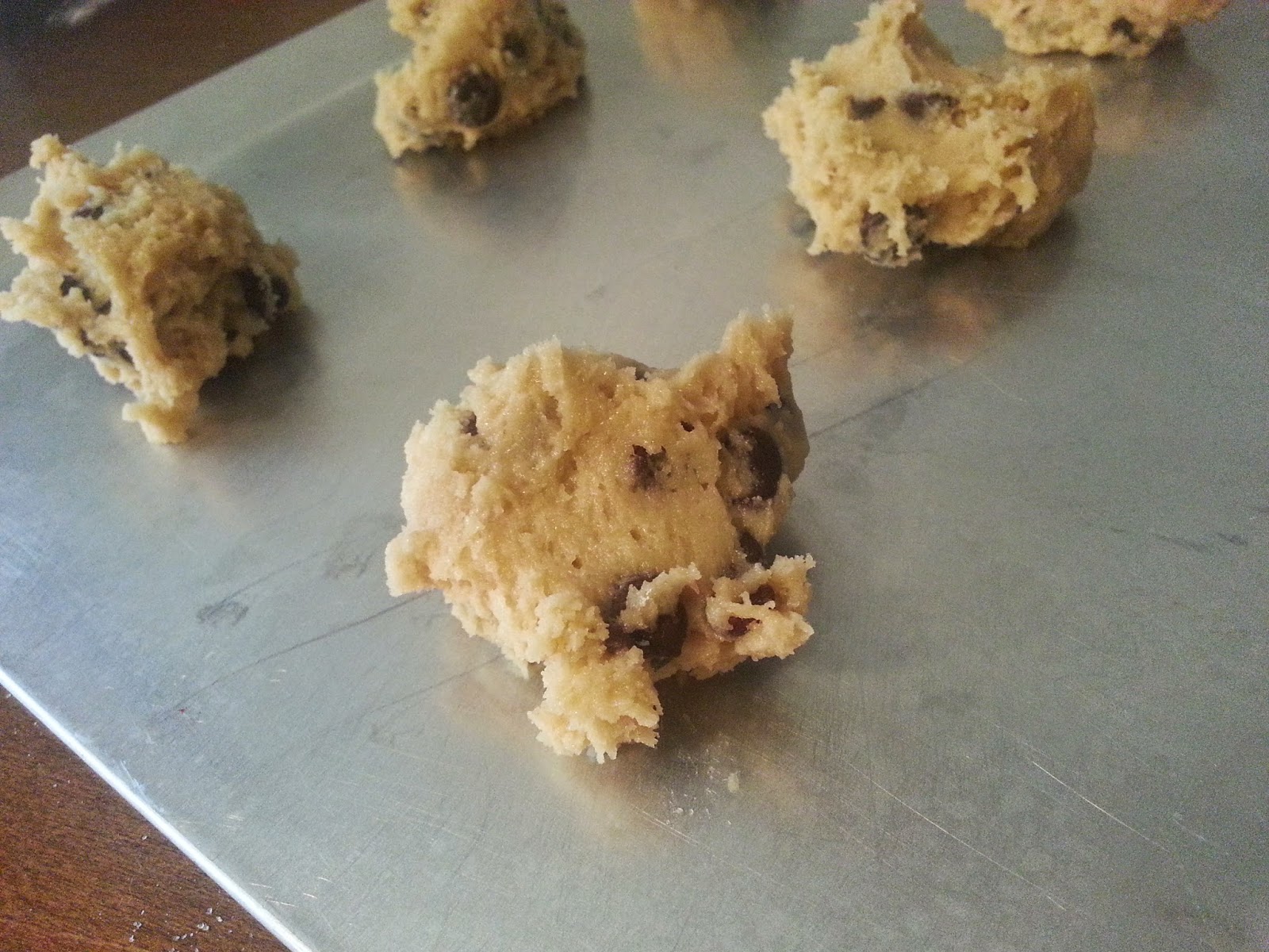 First I attempted drop cookies... easy peasy. Just get a spoonful of dough and drop it on the sheet.